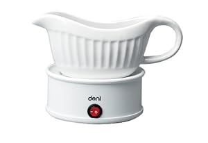 Classic design meets modern convenience in this wonderful update on a traditional serving piece. Crafted of fine white ceramic, the 18-ounce gravy boat rests upon an electric base that keeps gravies, sauces, syrups, butter, dips, and other accompaniments warmed to perfection throughout an appetizer course or meal. The base features an on/off switch and a detachable cord for clutter-free table service and convenient storage, while the gravy boat sports a dripless pour spout, oversized handle, ...